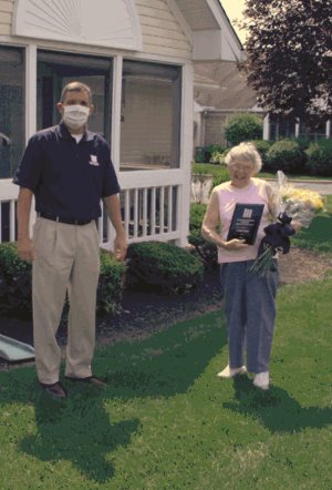 Licking Memorial Health Systems (LMHS) recently presented the Donald Day Volunteer of the Year award to longtime volunteer Carol Yost. The award typically is presented at the Volunteer Recognition Dinner; however, the event was cancelled due to COVID-19 restrictions. LMHS President & CEO Rob Montagnese, Vice President Development & Public Relations Veronica Patton, Volunteer Manager Sandy Hanlon, and family members visited Carol’s home to surprise her with the award and a bouquet of flowers.